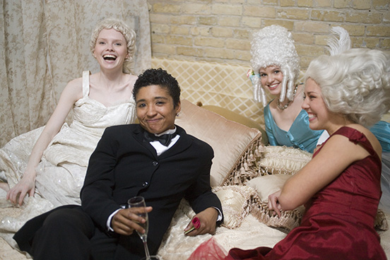 Studio Vincent's ultra-modern loft was the venue. Bejeweled 17th Century French femmes showcased the SV Collection. They also held court in Le Salle à Versailles [the Versailles Room], where Guests were invited to lounge, slip into silk smoking jackets, sip champagne and be pampered.