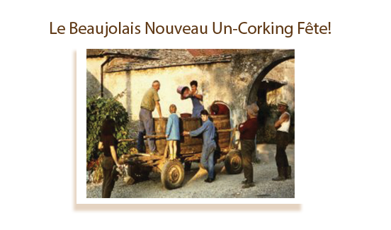 The evening commenced with a dramatic delivery of le Beaujolais Nouveau with pilots on vespas. The festive Un-Corking Ceremony was led by the village Mayor.